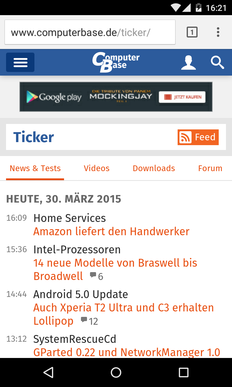 Hier mal 2 Screenshots von Chrome und Opera Mini mit jeweils der gleichen Anzahl an News im Ticker.