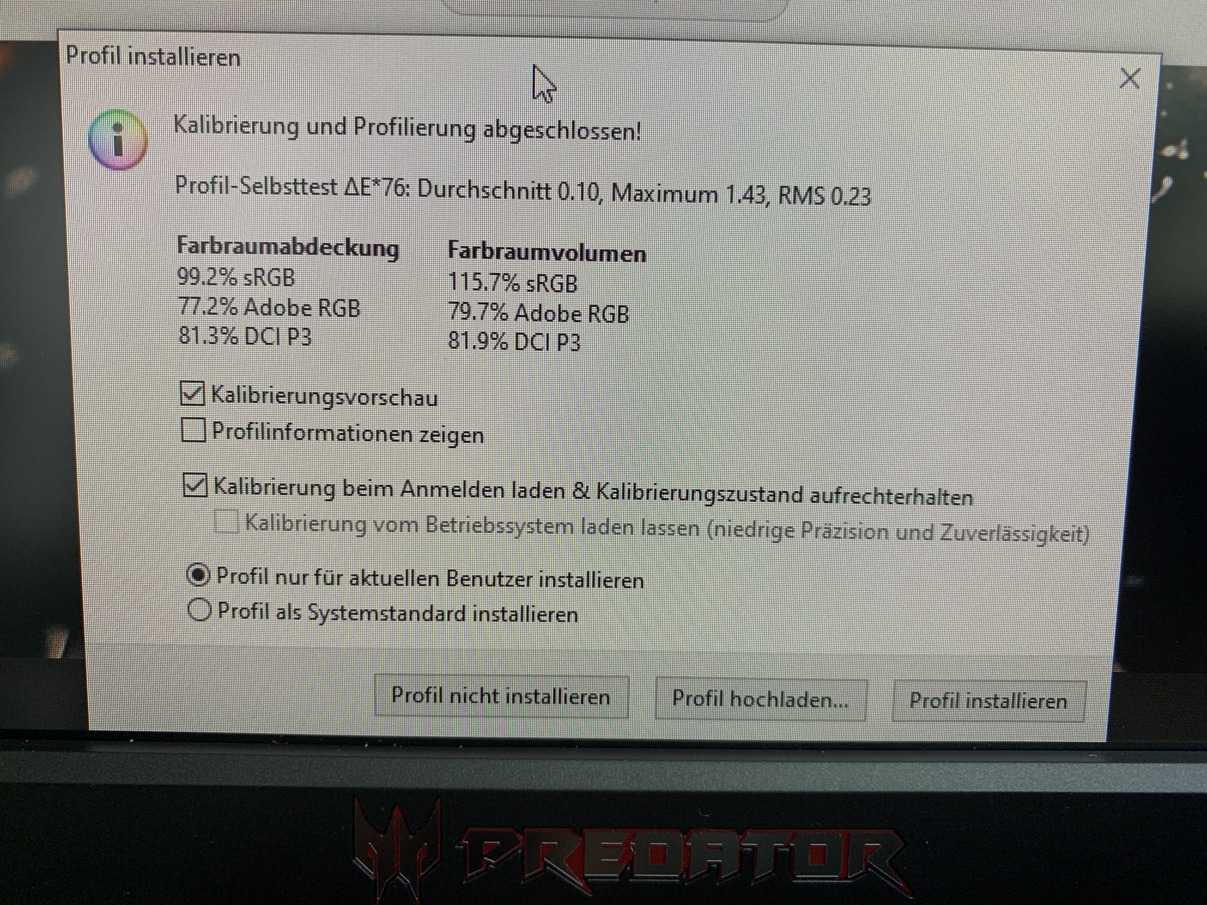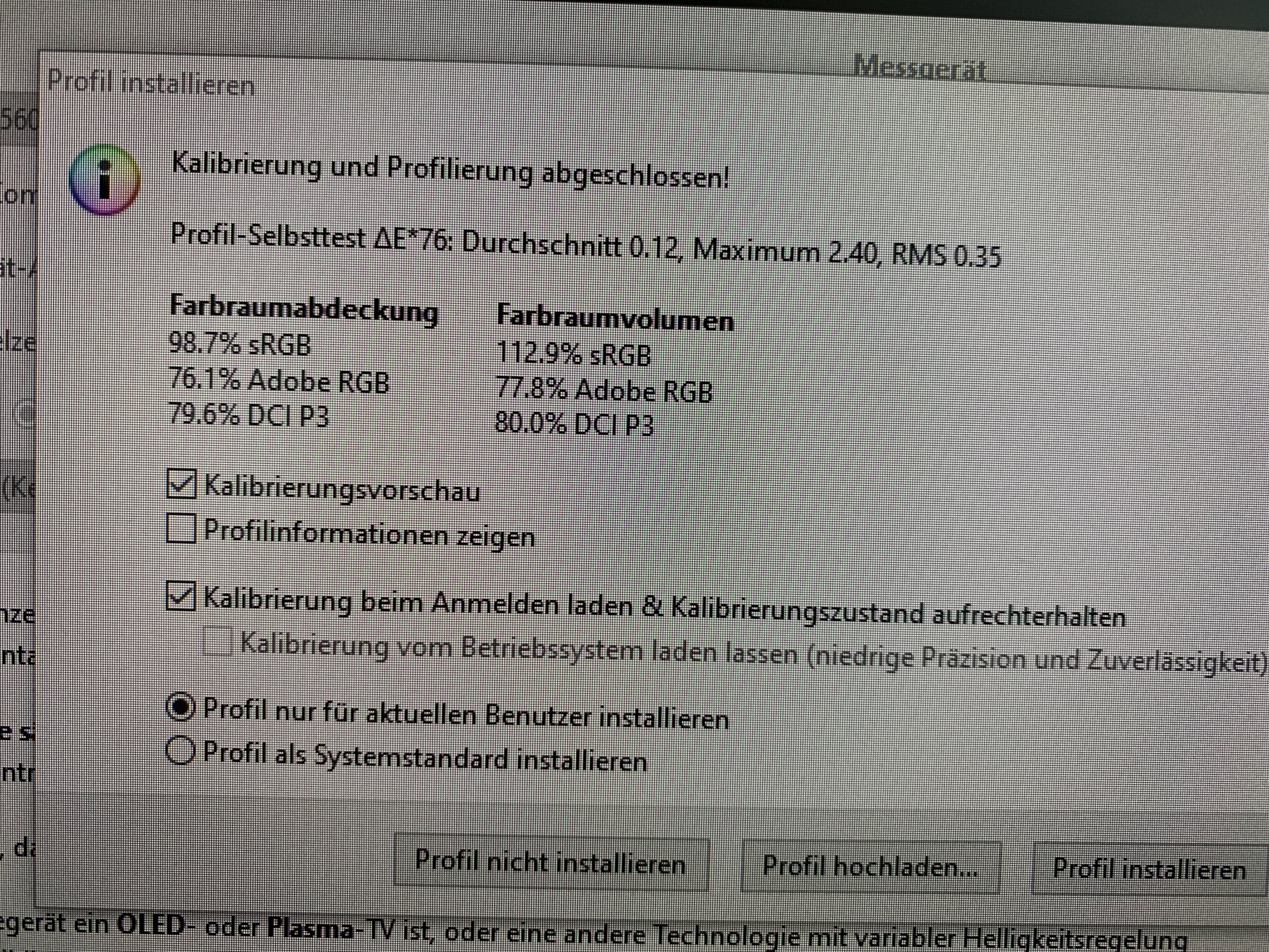 Gemessen habe ich mit der Software "DisplayCAL" und einem Sypder5.