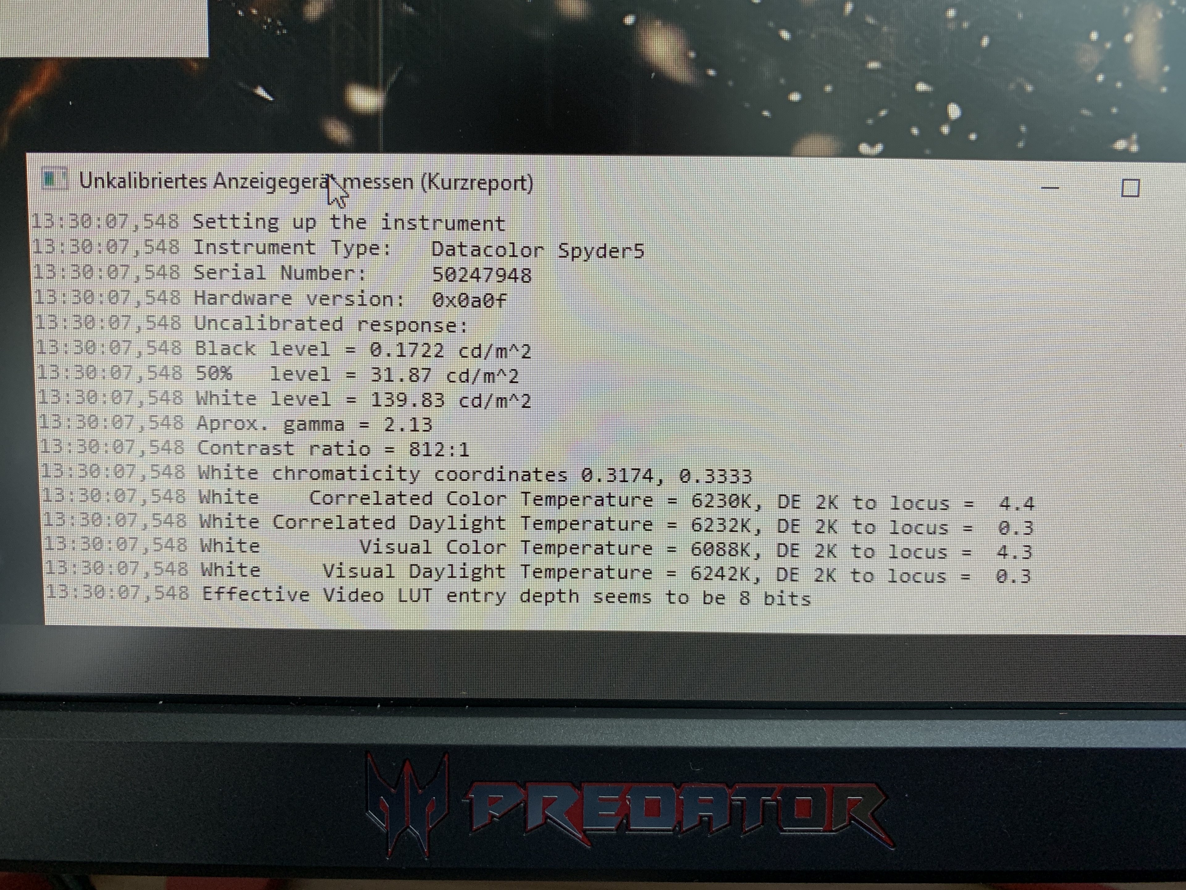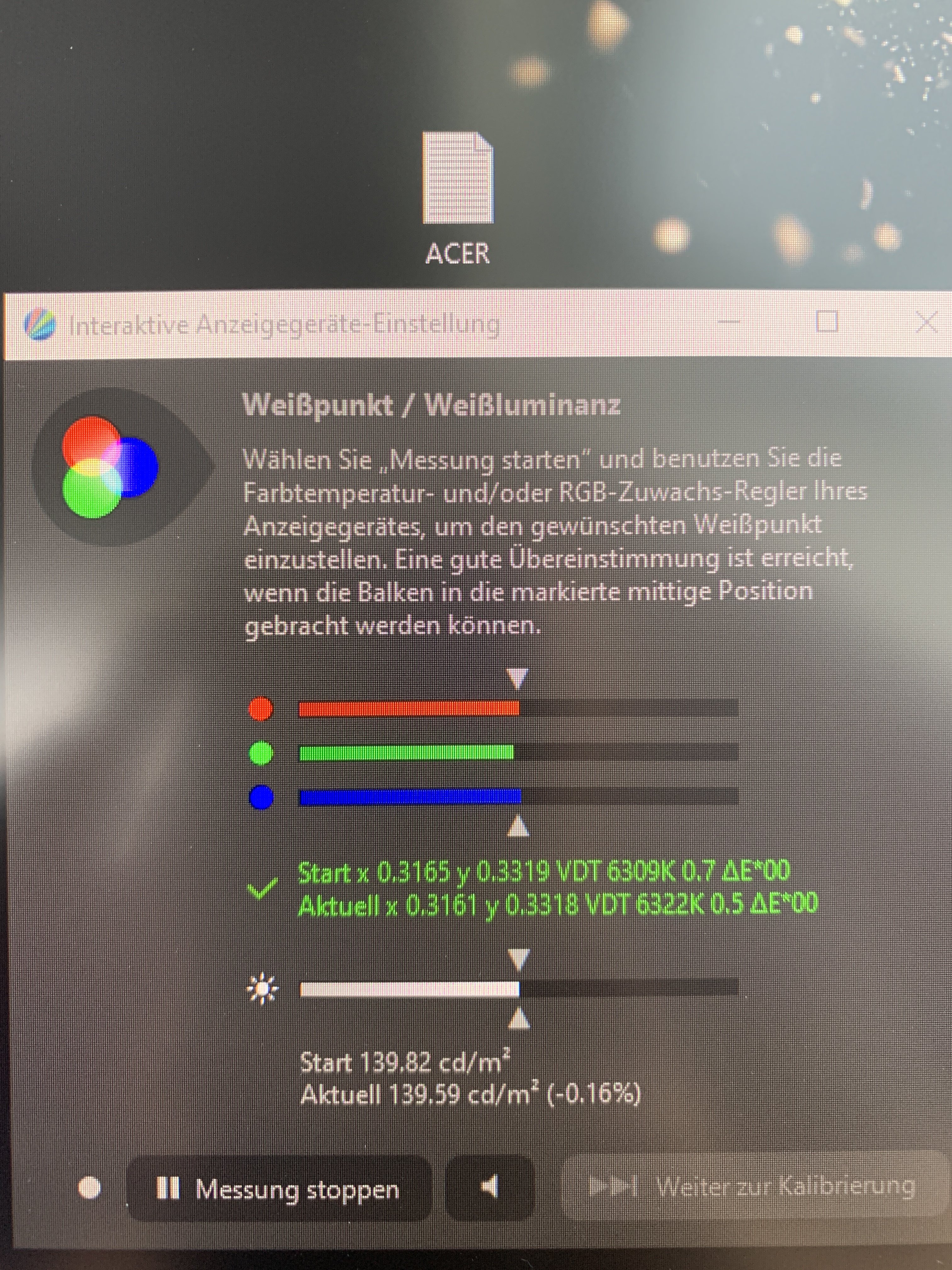 Acer: Kurzbericht - Einstellungen vor Kalibrierung - Kalibrierung