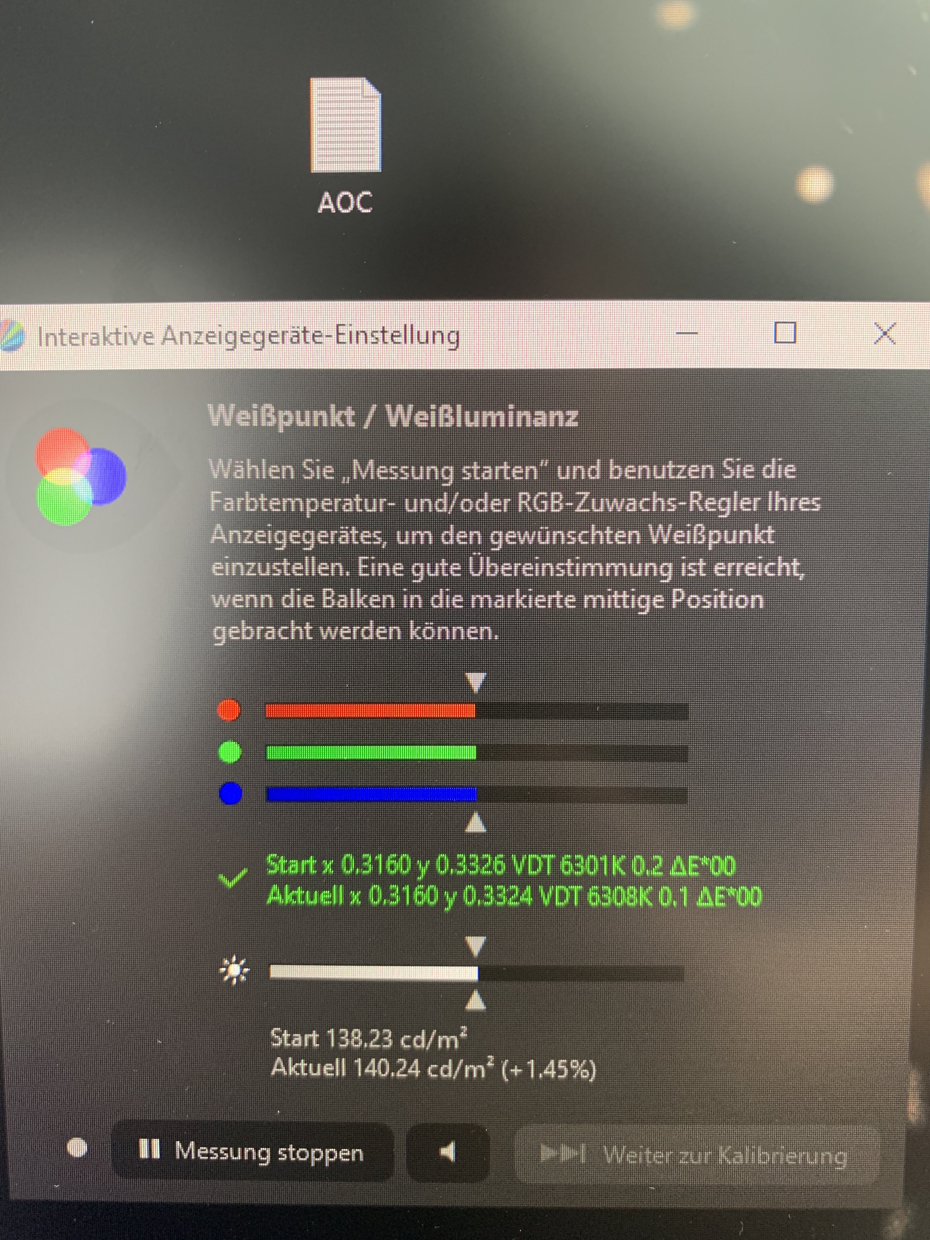 AOC: Kurzbericht - Einstellungen vor Kalibrierung - Kalibrierung