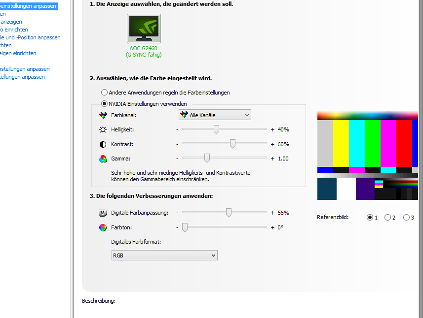 Edit: Das Bild ist meiner Meinung nach um einiges schlechter als vom benQ xl2420z... Habe schon mehrere Einstellungsmuster versucht. Dann muss es evtl. doch der Asus ROG Swift PG278Q werden, da es im 24 Zoll Bereich keine Alternative mit G-Sync gibt -.-
