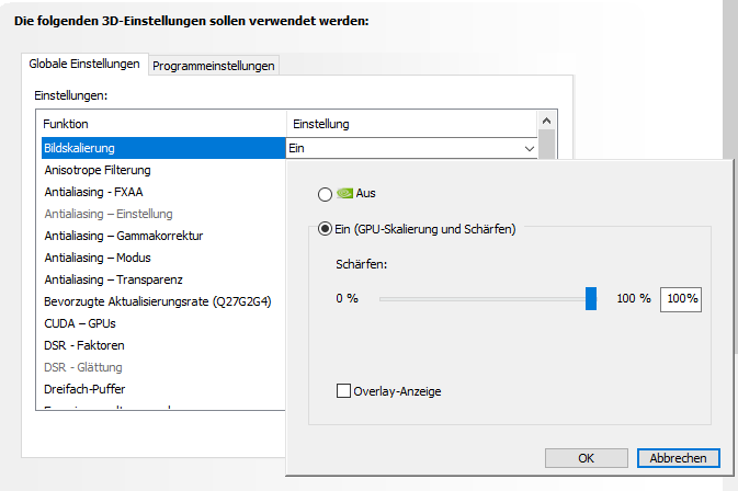 NVIDIA Schärfe ist auf 100%