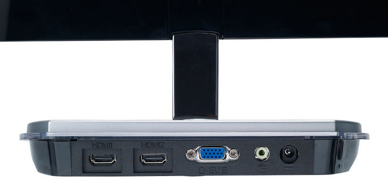 In diesem Bild sieht man 2 HDMI Anschlüsse, einen D-SUB Anschluss und 2 weitere, bei denen ich wirklich
