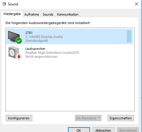 Doch leider immer noch kein Ton in der System Steuerung wird er bei Beiden als Audiogerät erkannt: