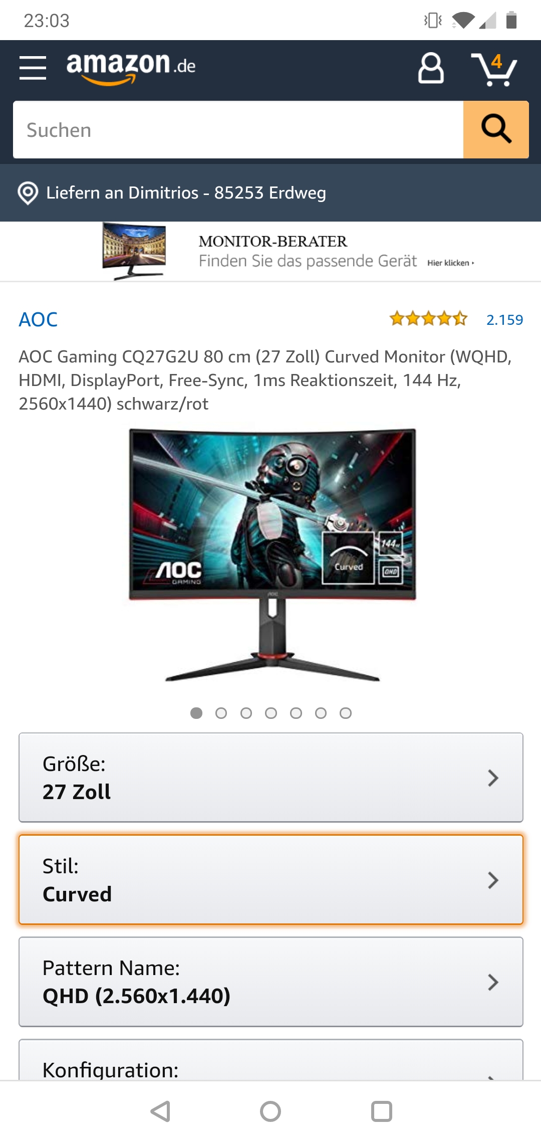 Wir sehen zwei neue 27" in QHD mit flache und gebogene AV Panel 144 Hz für ca 320€ die bald erscheinen, aber auch einen flachen 27" QHD 144 Hz der ca 400€ kostet.