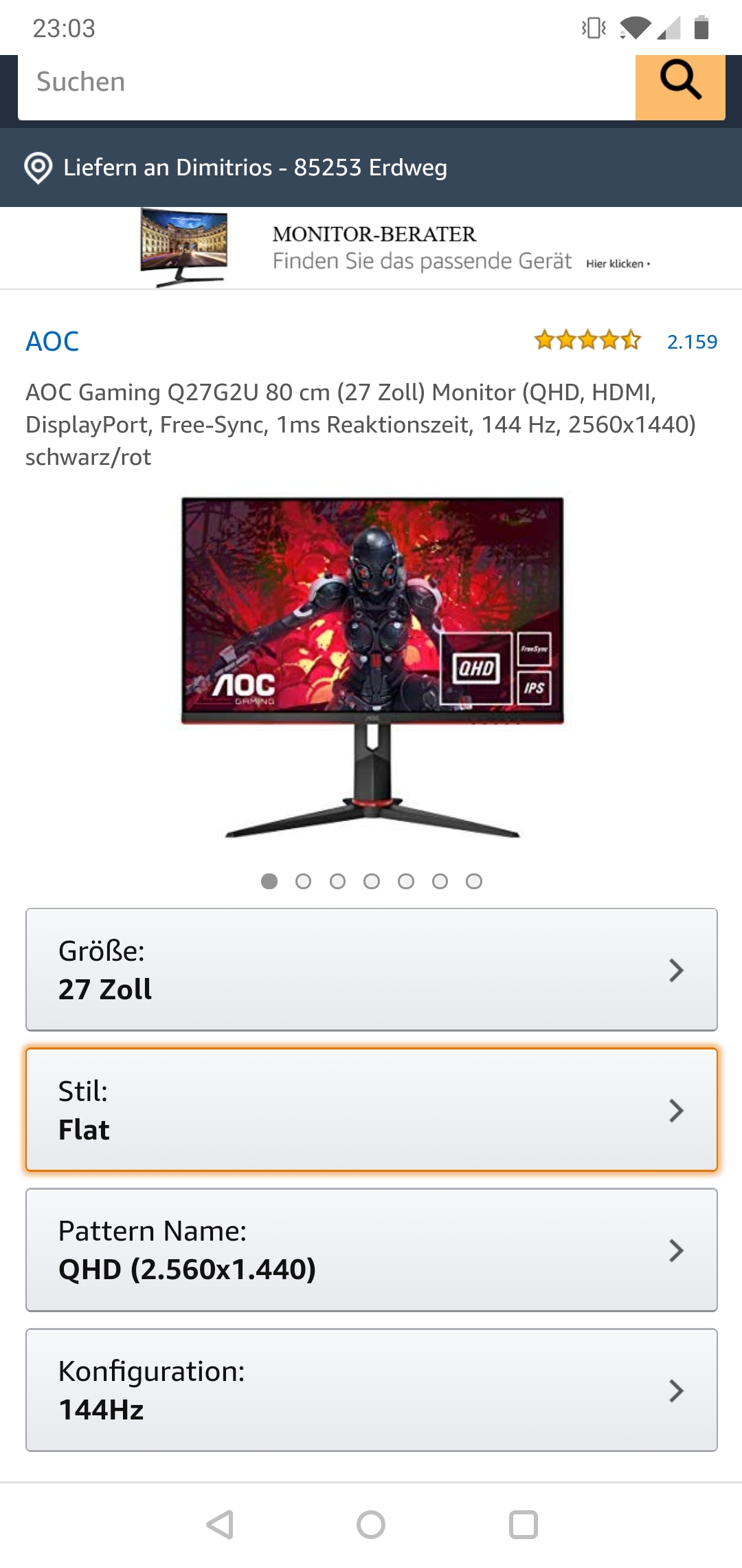 Darunter in beigefügten Amazon Link und auf'm Fotos, sieht ihr, dass bei AOC QHD und WQHD als unterschiedliche Auflösungen verkauft wird.