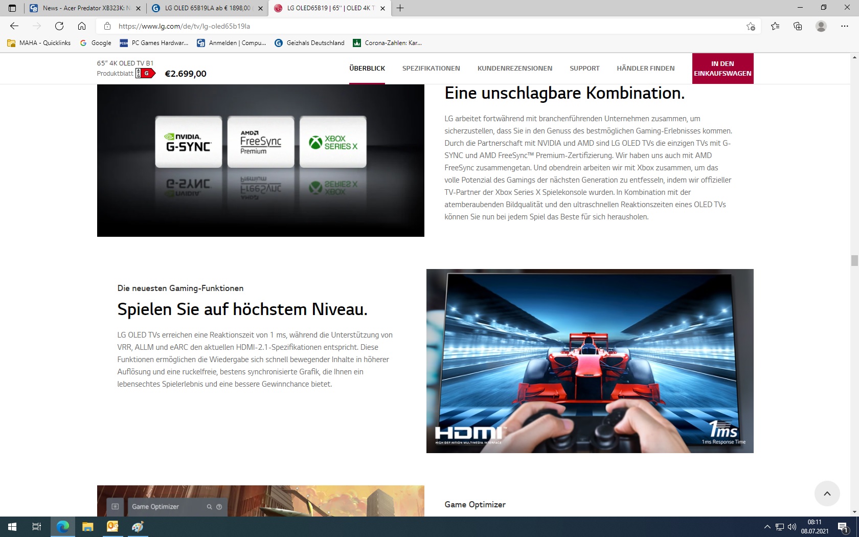 • LGs OLED TVs bieten eine Funktion namens Pixel Refresher, die der Vorbeugung temporärer Nachbilder dien