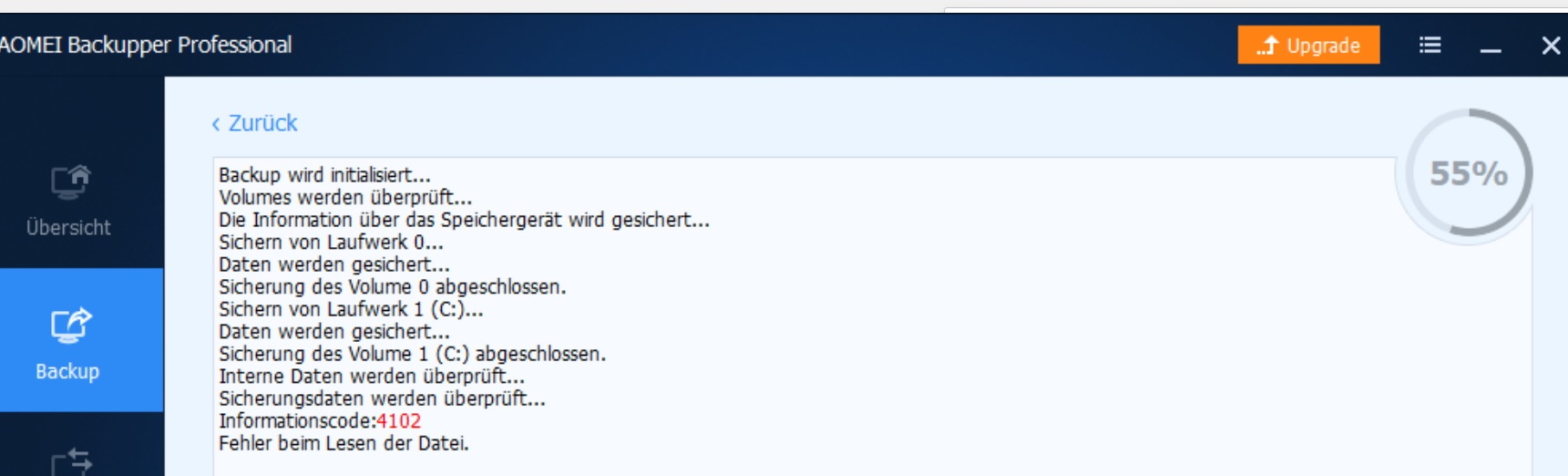 Bereits seit 4Jahren sehr zufrieden mit AOMEI habe ich nun das AOMEI Pro wegen dem „Universal-Restore“ installiert und alles verlief vorerst bestens. Jedoch klappten die später noch erfolgten (angehakten) Backups-Überprüfungen erst beim 3. oder 5.Versuch. Es geht also nur um den Überprüfungsdurchlauf, den ich auch bisher 4 Jahre immer anwandte ohne derart Probleme. Ggf. Image-Rückschreibungen verliefen 100%, so dass ich nun einen Pro-Mangel der Zuverläßigkeit befürchte, zumal ich das A-PRO nach der Testphase eigentlich gerne kaufen würde.