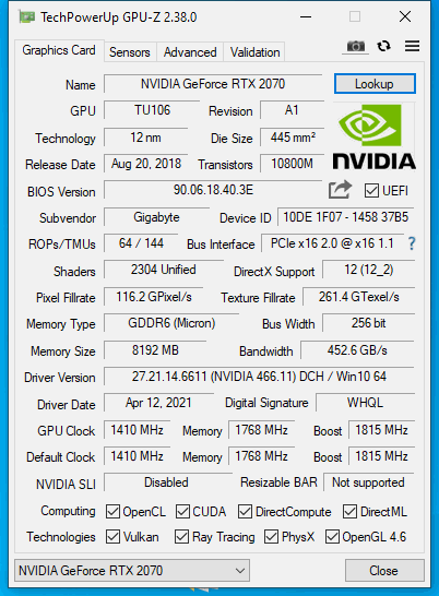 - Grafikkarte:RTX 2070