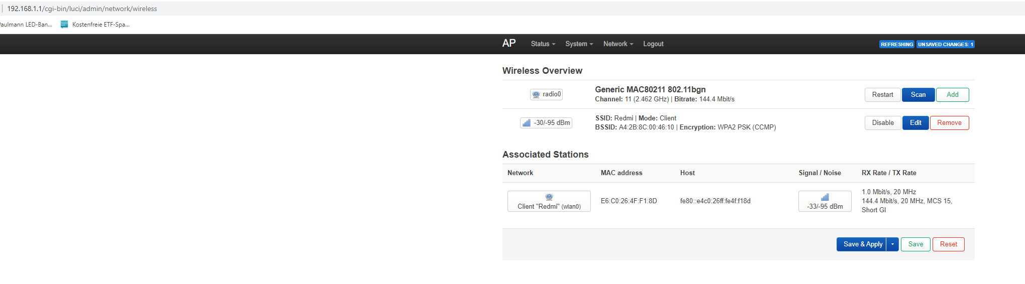Daher dachte ich mir, man könnte doch einen Repeater oder sowas mit Lan-Port nutzen um die Bridge in der Laube bei Bedarf über Handy-Hotspot ins Internet zu bringen, sodass man die Lampen alle nutzen kann. Internet würde ich über Tethering/mobilen Hotspot vom Handy beitragen können.