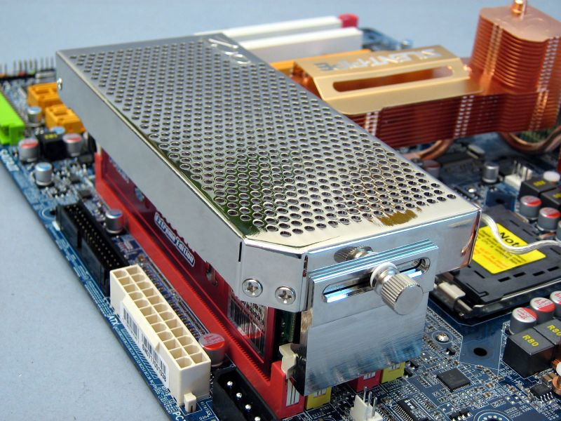 Anders geht es aber aufgrund der Platzverhältnisse auch nur mit Zusatz-Kühlern, wie z.B. dem OCZ-Aufsatz. Der nimmt dann aber wieder woanders Platz weg.