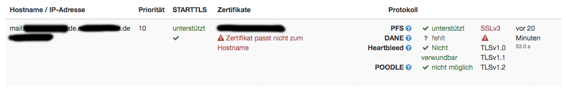ich habe neue Zertifikate auf meinem Debian Server eingebunden (von startssl.com) und bekomme nun bei mailserver checks diese Warnung bzw. diesen Fehler: