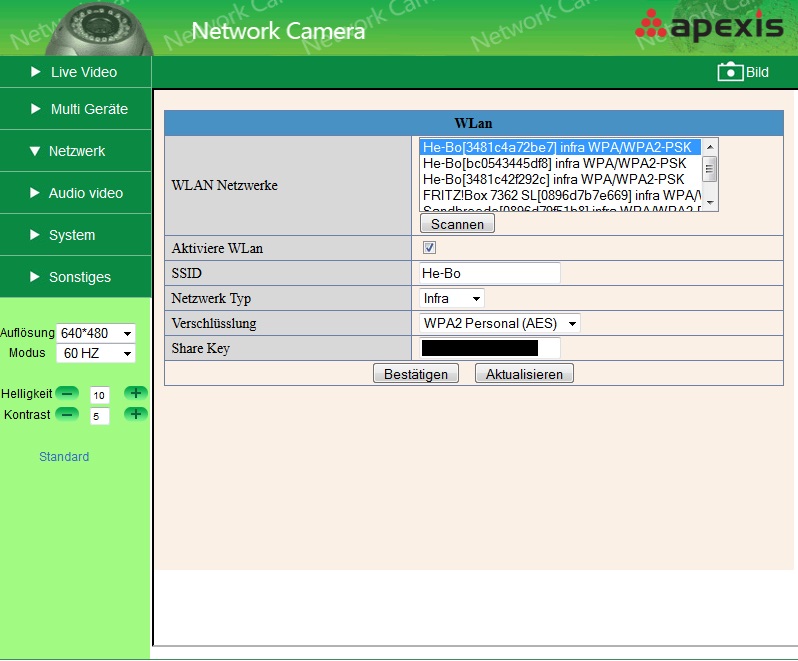 Hier ein Screenshot von meiner W-Lan seite der Cam