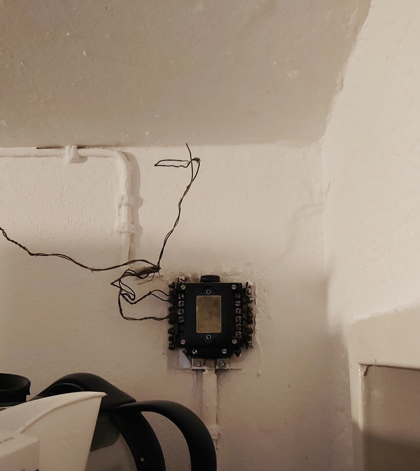 Dieser hat im Keller ein ominöses Gebilde, möglicherweise ist es ein APL (siehe Foto), gefunden, an dem die Telefon-/Internetdrähte mit Schraubverbindungen angeklemmt sind. Nach dem temporären Lösen der Drähte hatte der Nachbar kein Internet und ich auch nicht.