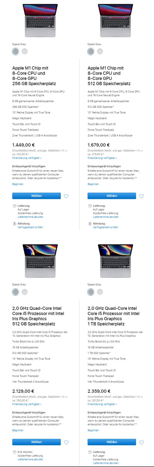 Na ja 450 € bzw. 910 € günstiger im Vergleich zu den Intels. Sieht man ja auch jetzt noch auf der Seite, siehe Anhang. Ich denke das Mini-LED Display wird eine Option kein Standard. Ähnlich wie es damals beim iMac war mit dem Display.