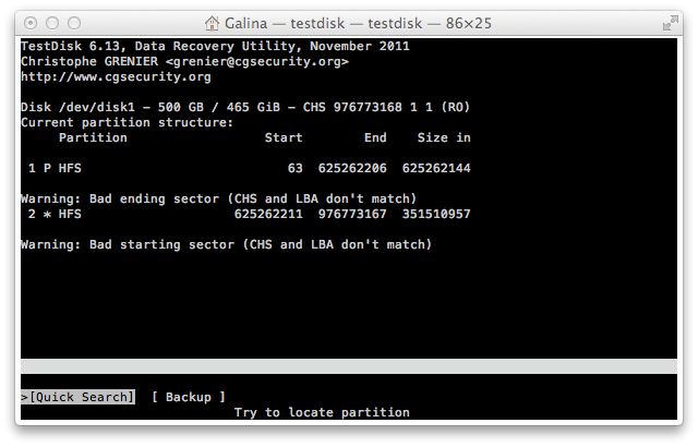Dieses zweite Volume habe ich, ohne vorher an die alten Daten zu denken..., mit Hilfe des Apple Festplattendienstprogramms mit MacOS-Extended Journaled formatiert, um anschließend darauf OSXLion zu installieren (das hat zum Glück nicht geklappt, da die Partitionstabelle dafür falsch eingestellt ist).