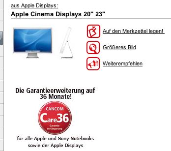 Wenn man sich ein Apple PowerMac oder Powerbook und Cinema Display kauft ist bei AppleCare das Display gleich mitversichert.
