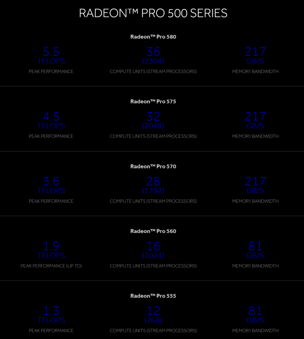 Des Weiteren wurde heute noch die neue Pro 500er Serie von AMD/RTG vorgestellt, mit nachfolgender Aufschlüsselung der unterschiedlichen GPUs: