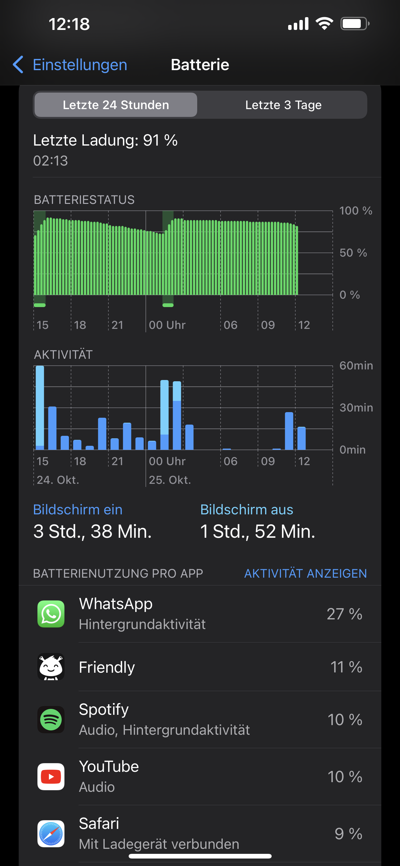 Schau doch mal in den Einstellungen unter "Batterie" was da so am Akku saugt.senf.dazu schrieb:Bei meinem SE ist's mal gerade 1 Tag