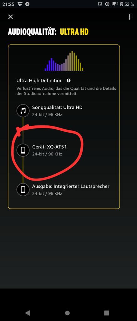 mein altes Sony Xperia 1 II ja wenn man beim Amazon music Player auf das Ultra HD antippt beim jeweiligen Song,