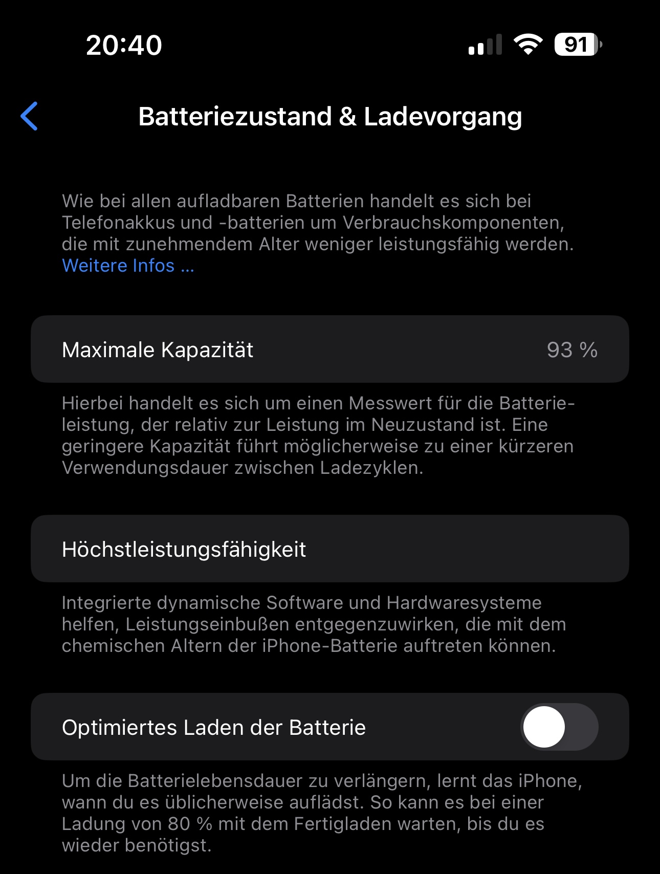 hat hier irgendwer schon von der Funktion "Optimiertes Laden der Batterie" gehört?