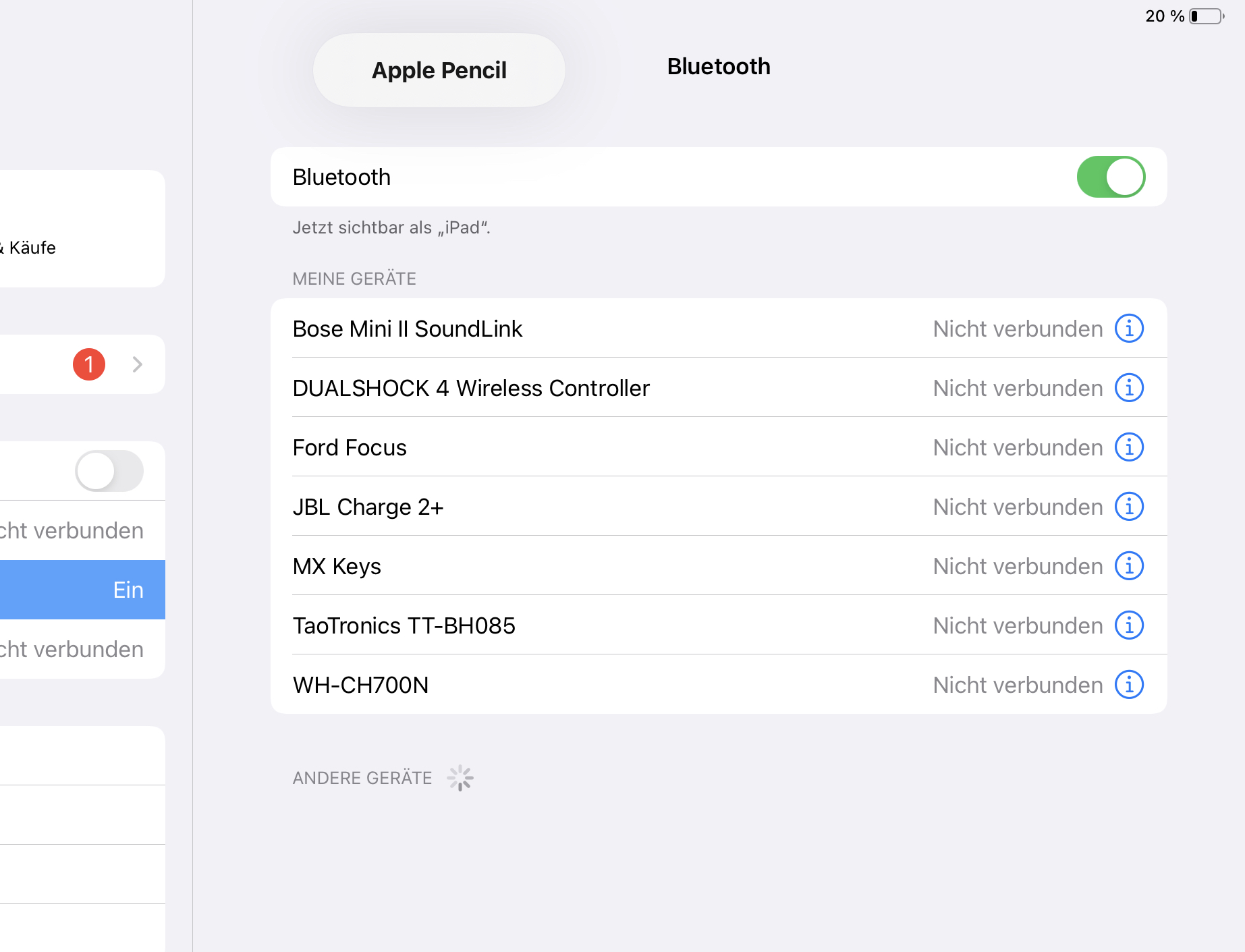 Mein Ipad Pro 11Zoll (1.Gen) erkennt den Apple Pencil nicht mehr. Die ganze letzte Woche jeden Tag Stifit und Ipad täglich genutzt.
