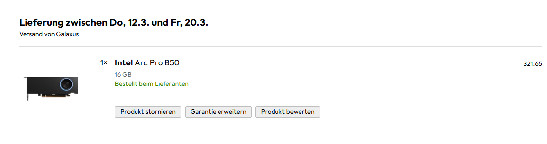 Tolle Karte, hatte sie auch kurz da - habe mich dann aber für die RTX Pro 2000 (Blackwell) entschieden.AAS schrieb:Jup, darum habe ich mir heute fürs NAS eine Intel Arc Pro B50 gekauft.