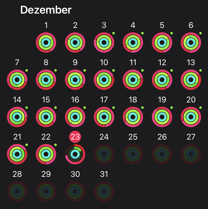 Meine Frau und ich geben gern zu, dass die AW uns wieder dazu bewegt hat, mit dem Sport anzufangen. Ja <ich> brauche diesen digitalen Motivator, sehe da aber nichts schlimmes dran. Das was er erreicht hat, kann ja nur gut für mich sein (siehe Anhang). 😉Maggolos schrieb:Ok