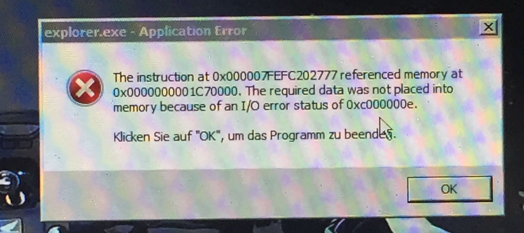 Kann mein PC neu starten dann klicke ich zum Beispiel auf Explorer das geht und nach einigen Minuten geht das dann nicht mehr. Oder wenn ich inn Chrome bin schließt mein PC einfach von alleine Chrome und dann kann ich es auch nicht mehr starten oder wenn ich auf Explorer drücke kommt dann die Meldung.