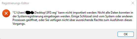 OK ich weiß jetzt warum. Es wurden alle Reg Key´s gelöscht. Ich habe zum glück noch ein Backup dieser Key´s. Wenn ich dieses aber importieren will kommt das: (siehe Foto)