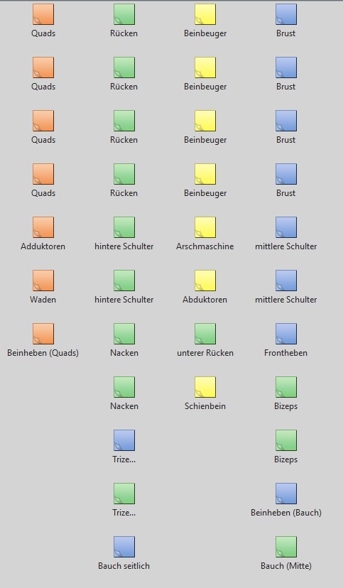 Appsuche: einzeilige Notizzettel anordnen (Trainingsplan, Dienstplan etc.)