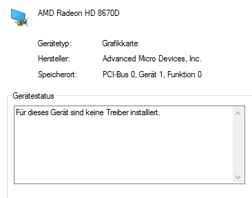 Nachdem Windows das Update vollbracht hat steht im Geräte-Manger zur HD 8670D folgendes