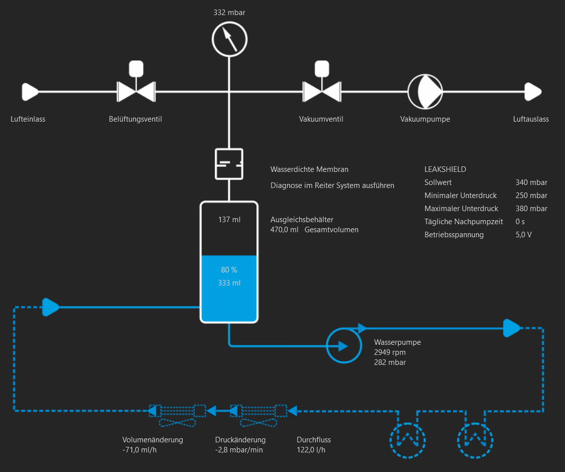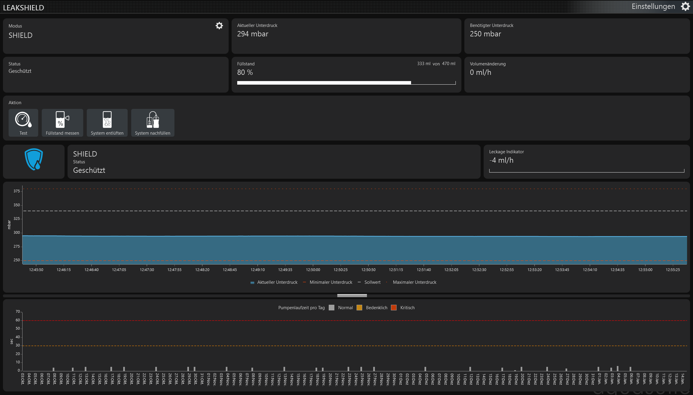 Selbst die Einstellung auf die kleinst mögliche von 2 Pumpen, liegen über die maximale Höchstdrehzahl mit der das Leakshield sauber arbeiten kann.