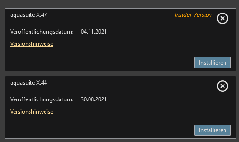 Es stehen 2 Updates für die AquaSuite bereit, aber das bedeutet immer einen Reset daher habe ich es noch nicht gemacht.