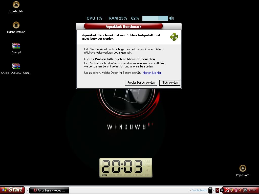 hi, habe windows frisch aufgesetzt, danach aquamark installiert, geht aber nicht an. auch habe ich den patch ausgefürt und natürlich alle treiber installiert, wo könnte der fehler liegen?