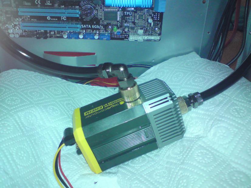 Sooo, der Kreislauf steht, alles ist dicht, der AGB (oben) ist voll mit Wasser befüllt, beim Einschalten des Netzteils allerdings leuchtet die Rote Led auf der Pumpe nur kurz auf und danach arbeitet die Pumpe sichtlich allerdings wird kein Wasser gesogen oder gepumpt, die Pumpe selber aber sollte das Wasser schon mit der Schwerkraft erhalten haben...