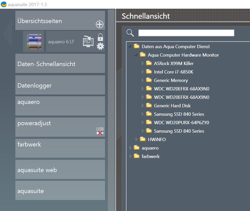 Also die aktuelle Aquasuite hat den Open Hardware Monitor schon integriert, damit lassen sich viele Dinge (bestimmt nicht alle, aber ausreichend) viele Informationen auslesen - früher musste man den oder AIDA64 oder HWiNFO noch manuell einbinden.