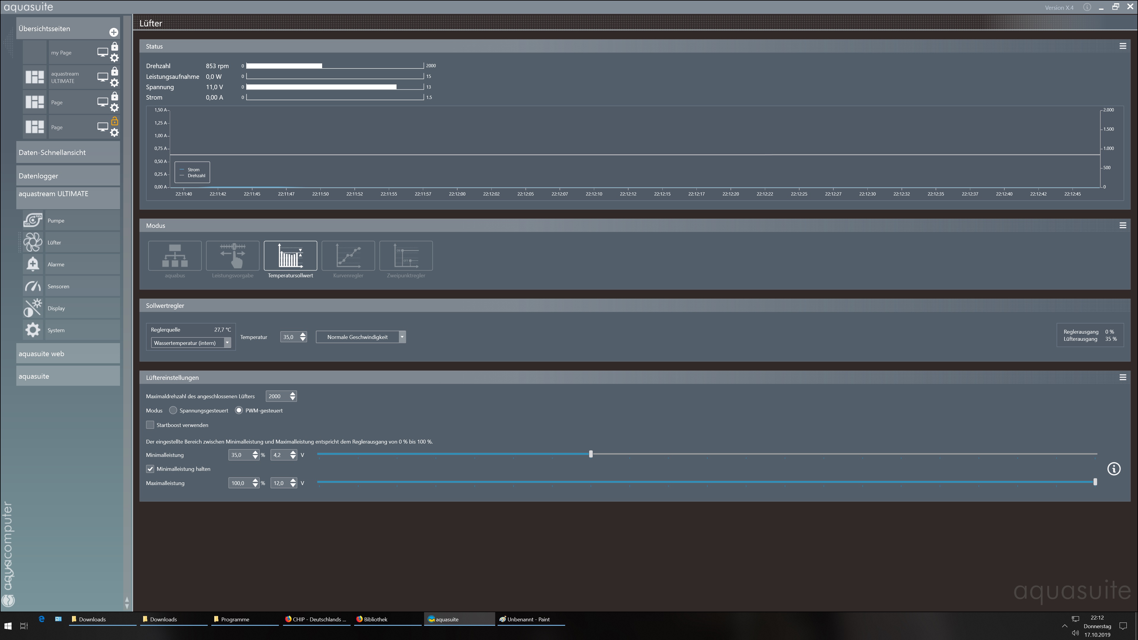 Ich nutze Aquasuite zur Steuerung der Wasserkühlung. Ich hatte mir die Einstellungen von meinem Kumpel damals auch gescreenshotet (fall´s sie jemand einsehen möchte). Doch mit diesen Einstellungen funktioniert das automatische Zuschalten der Lüfter nicht.