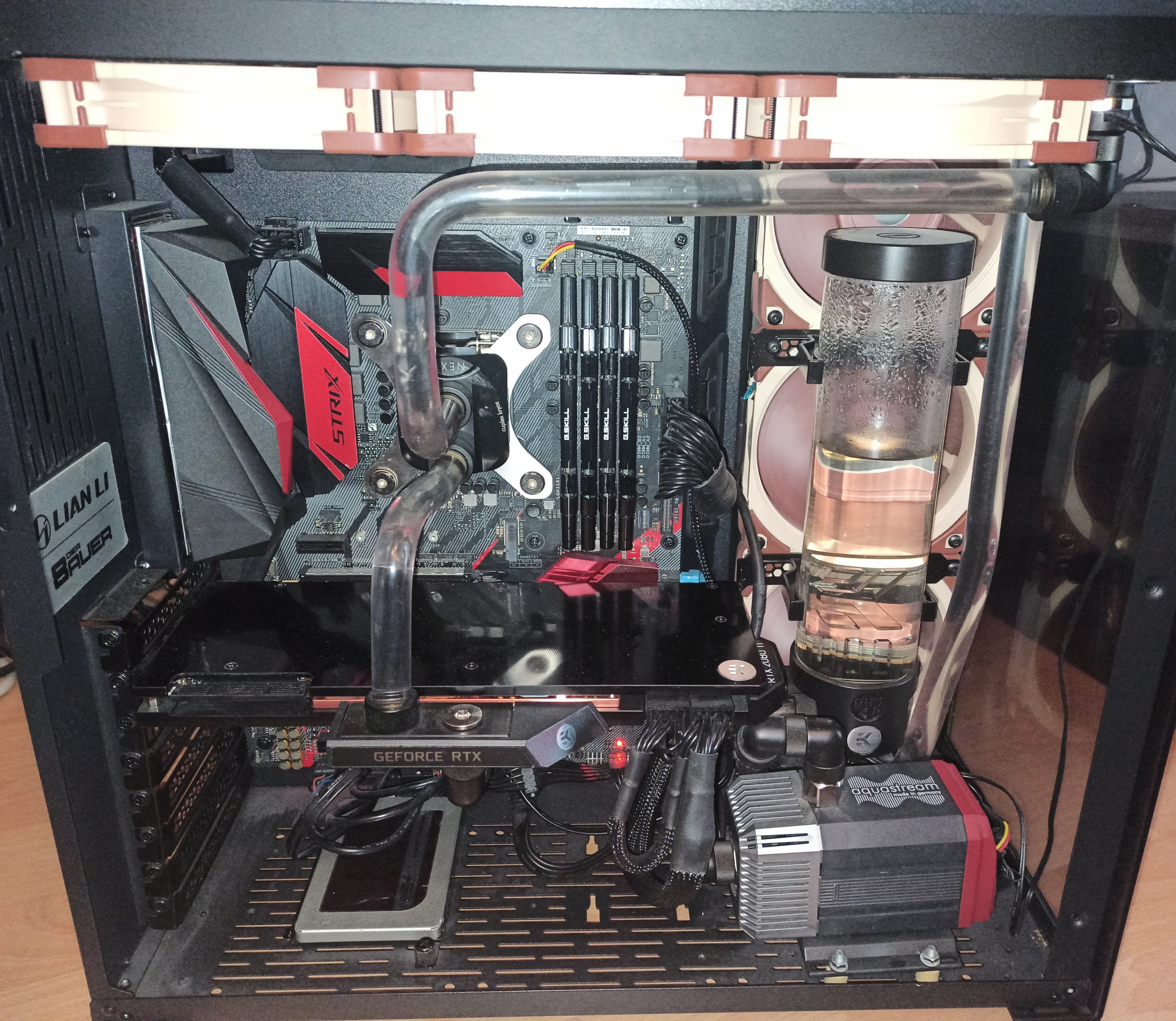 Vor der Reparatur (Temperaturprobleme weil die Wärmeleitpaste der CPU "eingetrocknet" war) hatte ich schon das Problem, dass beim spielen, also wenn die Temperatur des Wassers der Wasserkühlung stieg, sich die externen Lüfter nicht (mehr) automatisch zugeschalten haben.