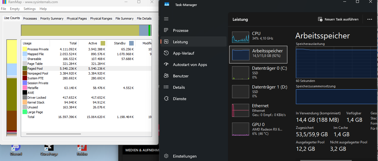 Ich habe mir jetzt einiges Beiträge durchgelesen und habe mir die App RAMMAP Gedownloaded leider hab ich von dem ganzen wenig Ahnung ich habe aber jetzt mal Bilder vom Task sowie RAMMAP gemacht eventuell kann mir ja jemand weiterhelfen.