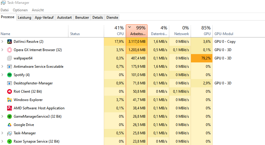 Hallo, im titel steht quasi schon meine Frage. Mein Arbeitspeicher ist teilweise bei 4 Gb nutzung schon zu 100 prozent ausgelastet obwohl ich 16 Gb RAM eingebaut habe, woran liegt das?