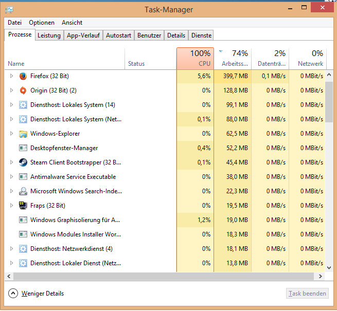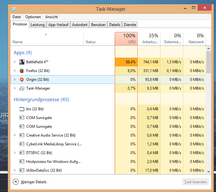 wenn ich dann auch noch ein spiel starte ( getestet mit DotA2 und Battlefield4) geht die Auslastung in den 90ger Bereich und auch der CPU schliesst sich an.