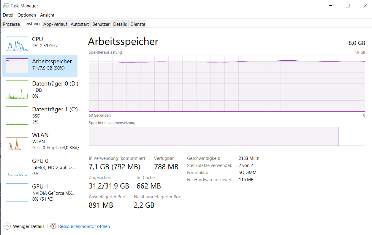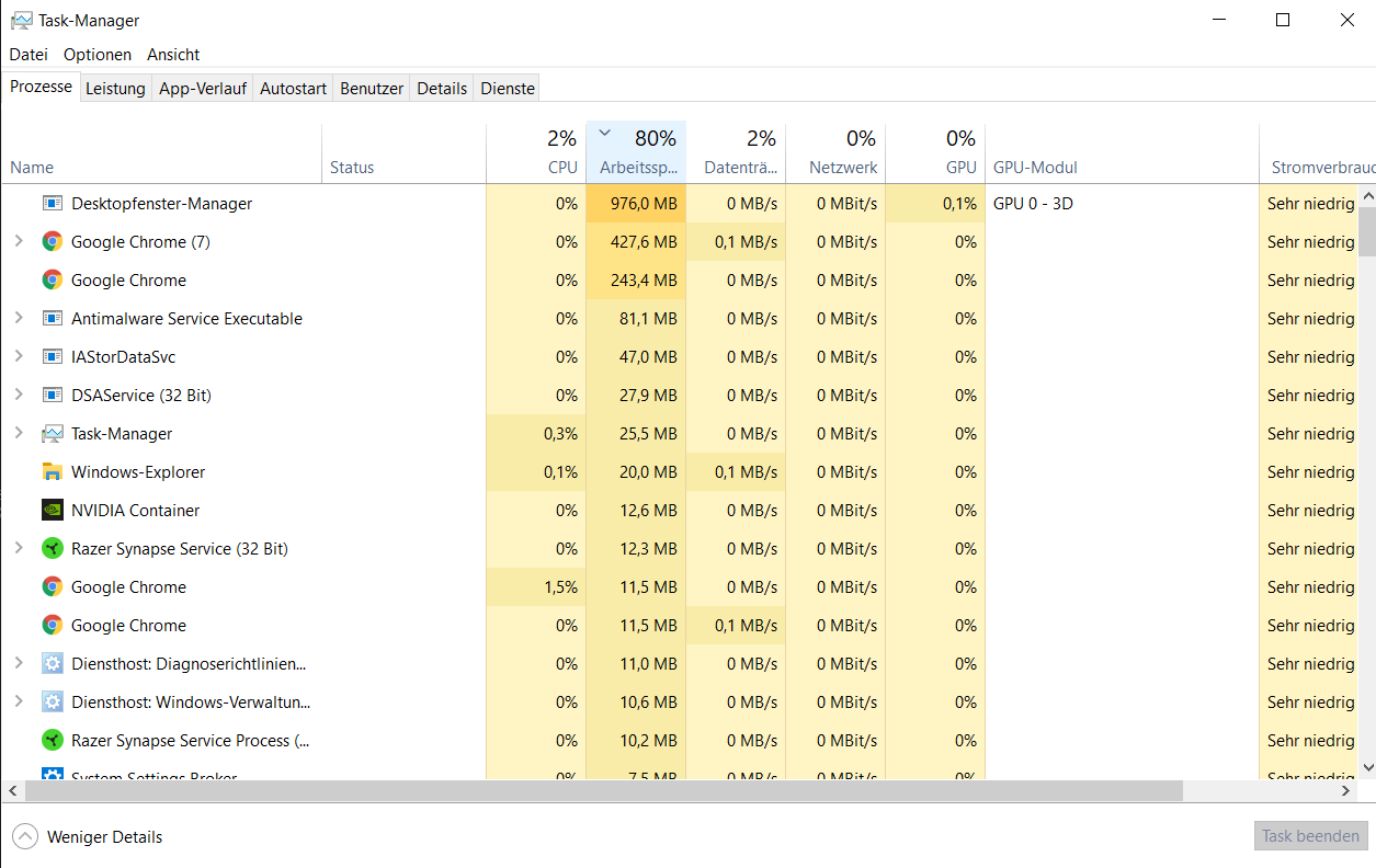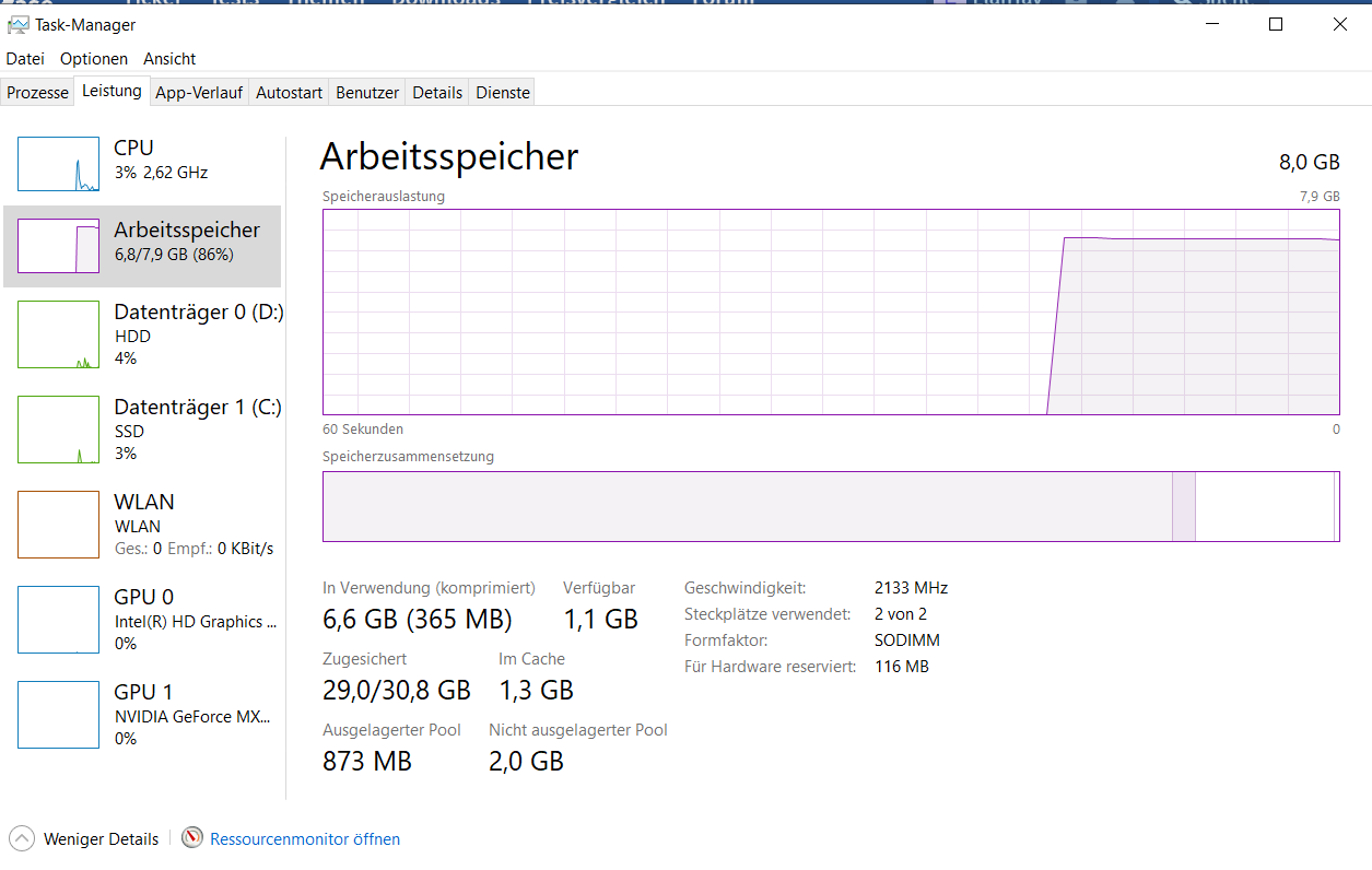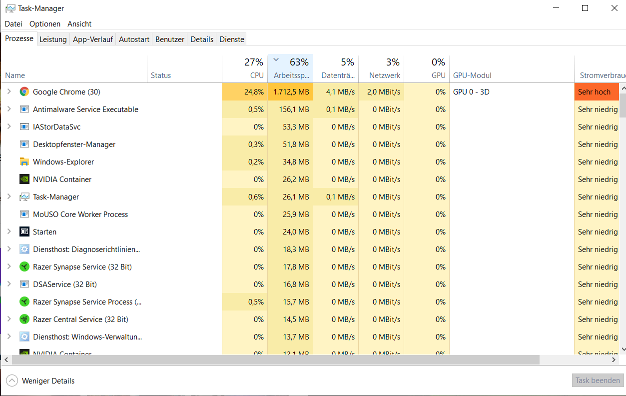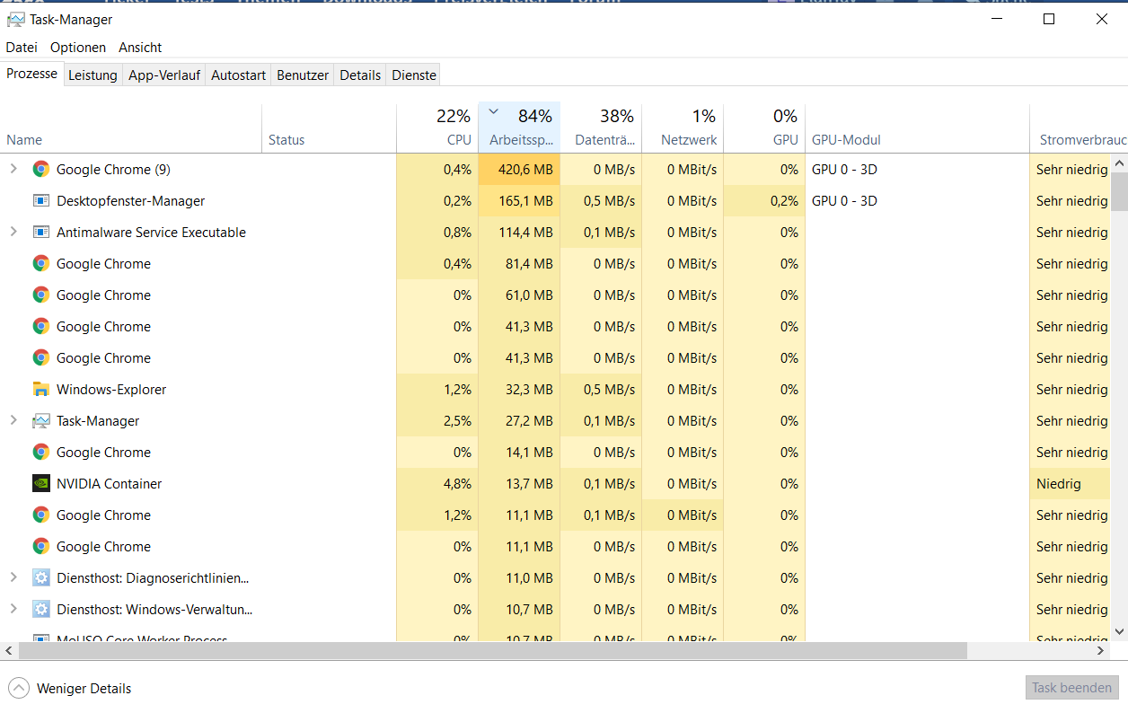 Ich habe seit einer weile das Problem (bin aber erst vor ein paar Tagen explizit darauf aufmerksam geworden, davor immer nur verwundert), dass mein Laptop hängt und sehr langsam reagiert, obwohl ich kaum etwas offen habe, bzw. der Arbeitsspeicher mit meiner Nutzung nicht so sehr ausgelastet sein sollte, wie er es aktuell ist. Hat hier jemand eventuell eine Idee woran das liegen könnte? Habe bereit einige Seiten durchgeforstet aber nichts finden können und bin ziemlich verzweifelt... viele reden von diesem "Killer"-Treiber aber ich denke nicht, dass ich den in meinem Laptop drin habe. Auch Virensoftwares habe ich alle gelöscht, da die auch öfter mal im Verdacht stehen sollen.