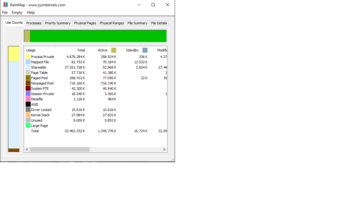 Es geht nicht direkt um das RAMMap sondern dass sobald der Ram 99% Auslastung hat ichs dann nicht zum starten kriege. Habs jetzt mal im Hintergrund laufen und hoffe dass das Ganze auftritt, und dann ein F5 refresh funktioniert um zusehen obs am Pool liegt ^^