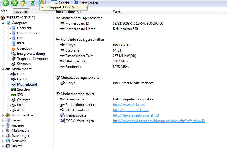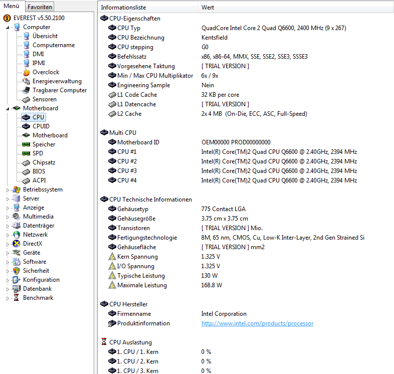 Ich habe mal ein paar Bilder vom Abbild meines Systems angehängt. Habe sie mit Everest Ultimate Edition gemacht.