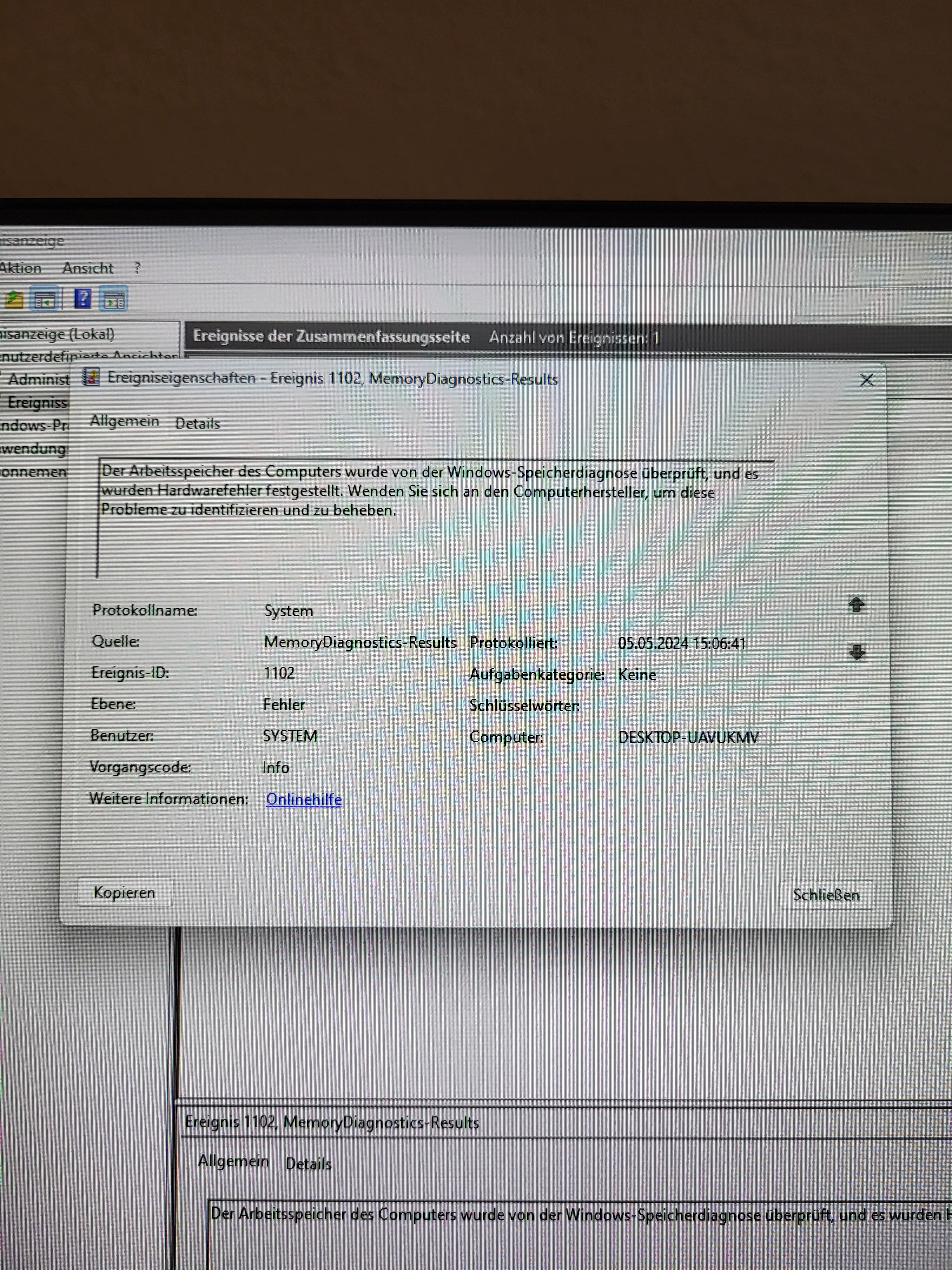 Also es ist wahrscheinlich, dass es am RAM liegt. Aber ohne Gewissheit zu tauschen, wäre wenig sinnvoll, denn es könnte schließlich auch an was anderem liegen.