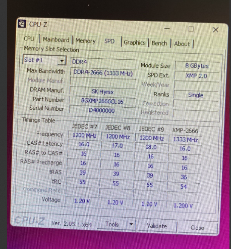 RAM: 1x DDR4-2666 SK Hynix | 1x DDR4-3200 Samsung