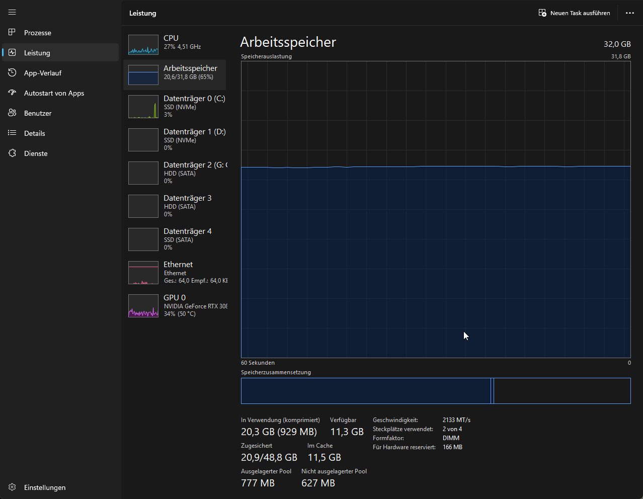 Von 20,3 GB sind 11,5 GB gecachte Daten, also eigentlich nur 9GB wirklich belegt. Das finde ich relativ normal heutzutage, je nachdem was so alles nebenbei läuft.kratijun schrieb: