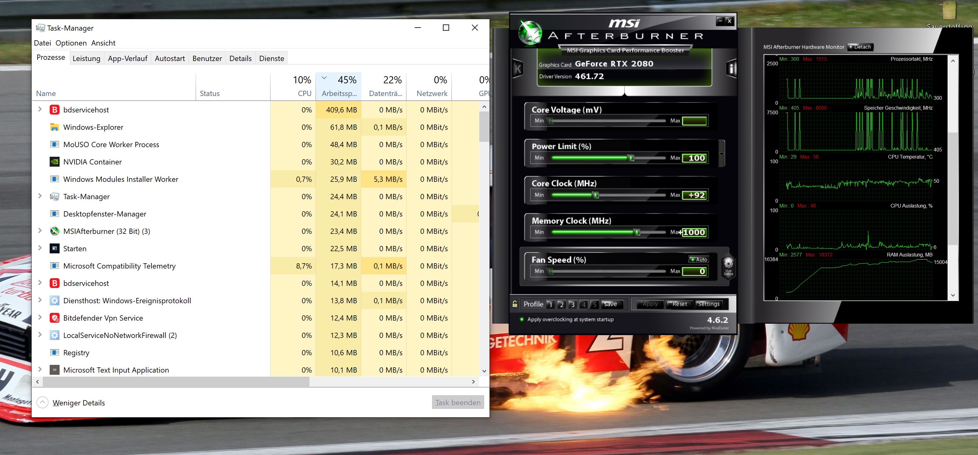 Virenprogramm ist Bitdefender, habe ich durchlaufen lassen, Das System ist erst wenige Monate alt und sonst ist auch nichts auf dem Recher was sich mit hoch fährt, ausser der Afterburtner. Teilweise hakelt es seit dem auch etwas in Spielen, denke ich.