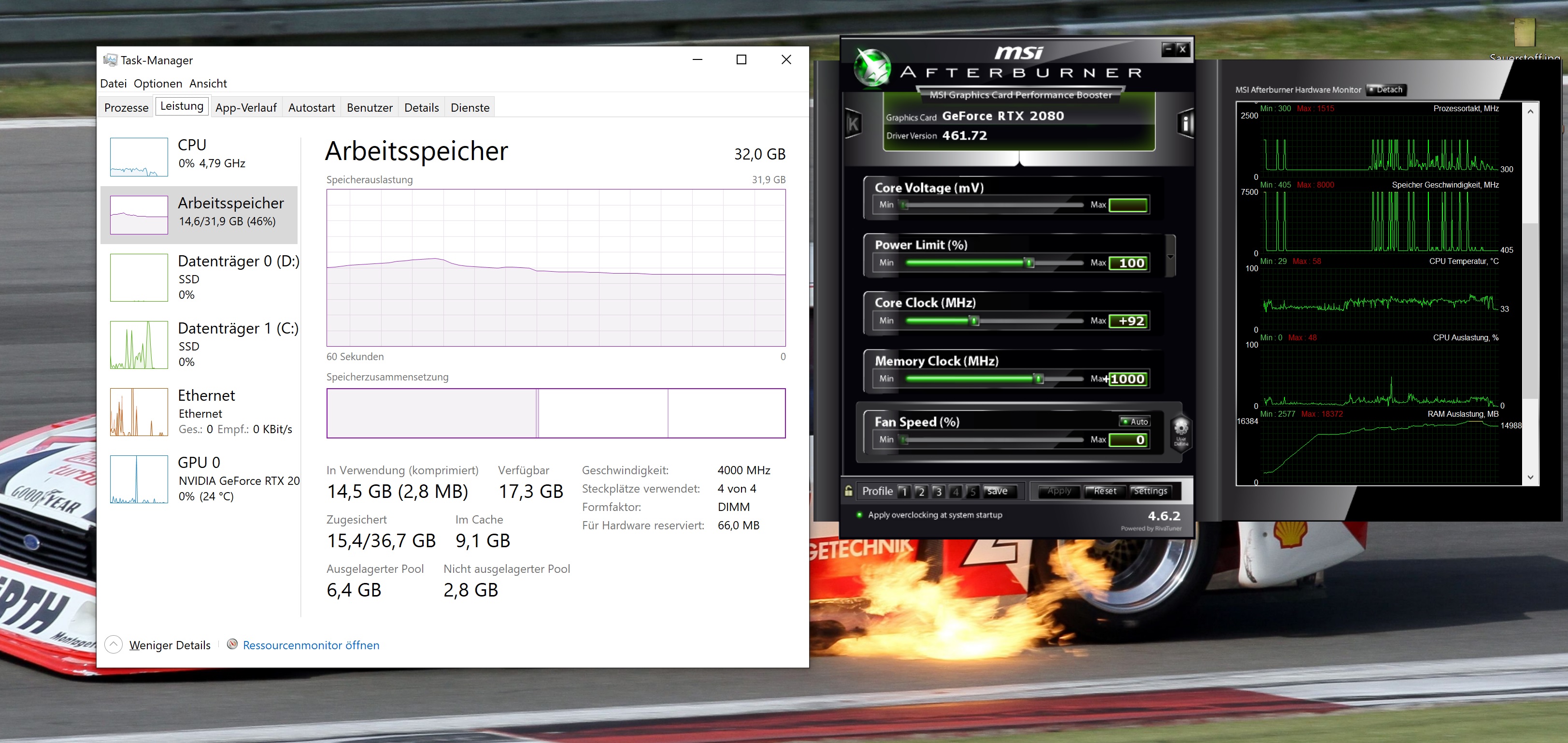 Auf den Bildern sieht man im Afterburner das er kurz nach dem Start gleichmässig "voll läuft", währendessen ist auch die CPU aktivität etwas höher.